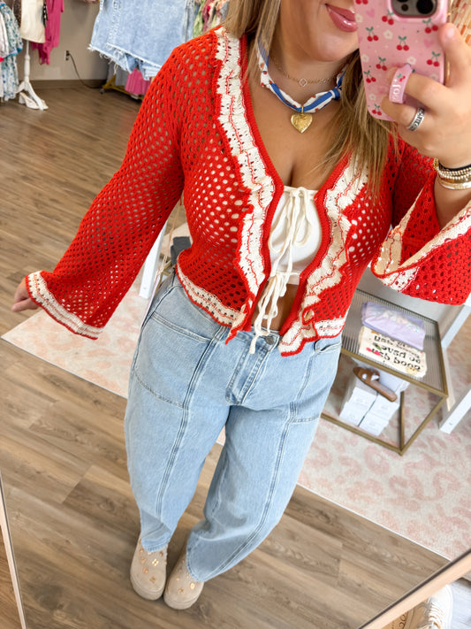 Tori Tie Cardigan- Red