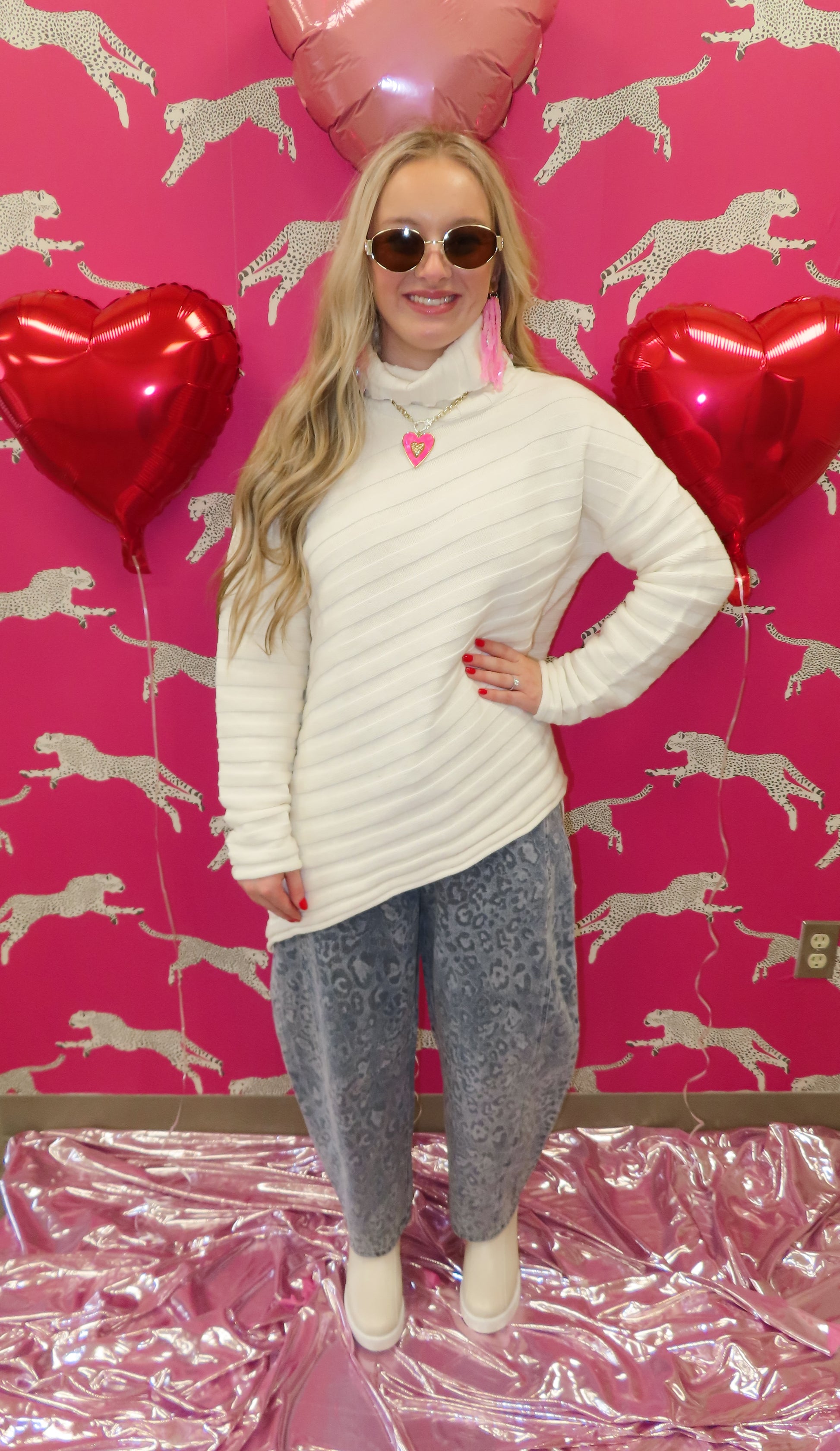 Light denim wash with leopard detailing. Barrel fit. True to size fit. Model wearing size Small.