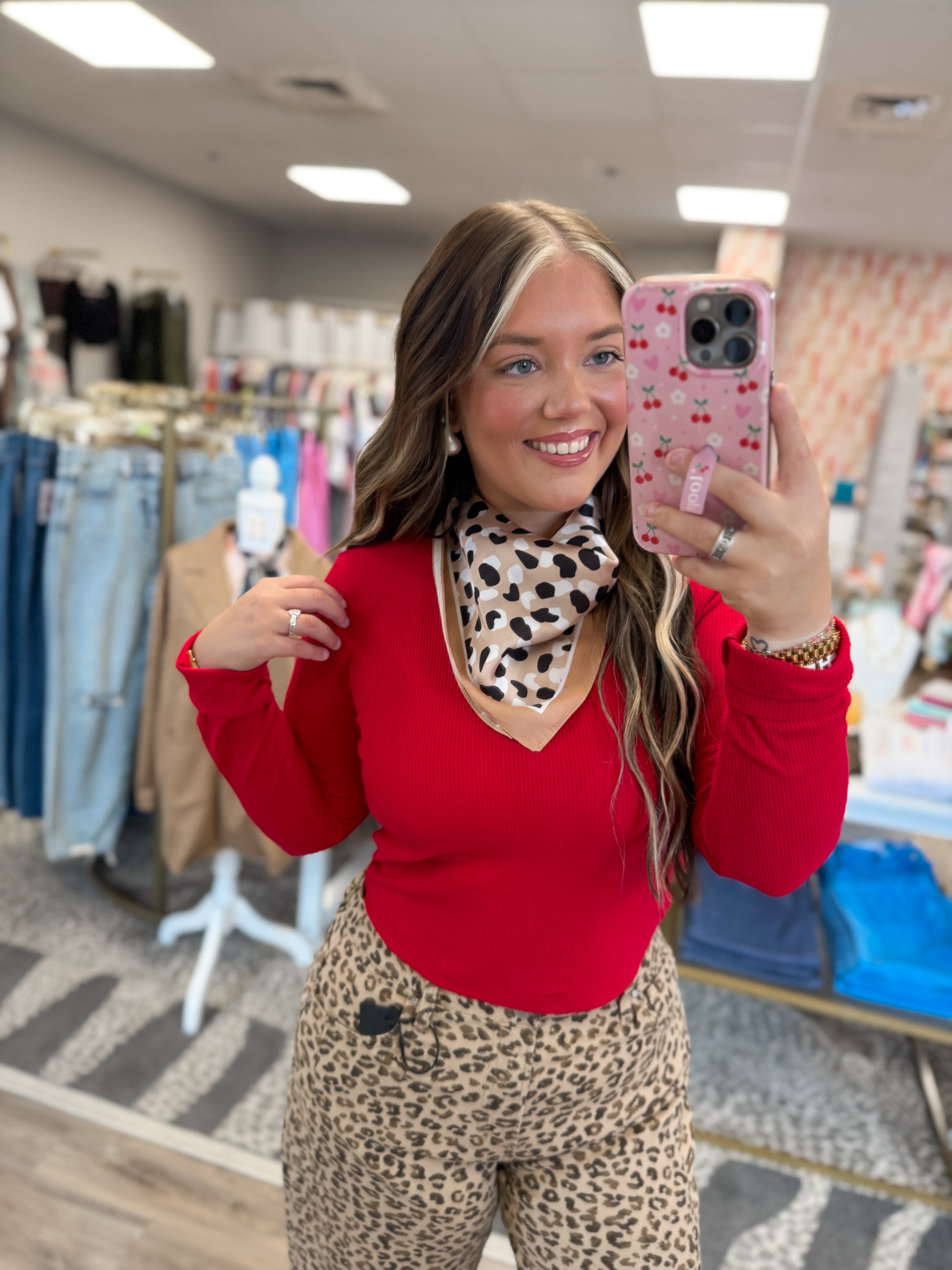 Slightly cropped. True to size fit with stretch— Model wearing size Large.